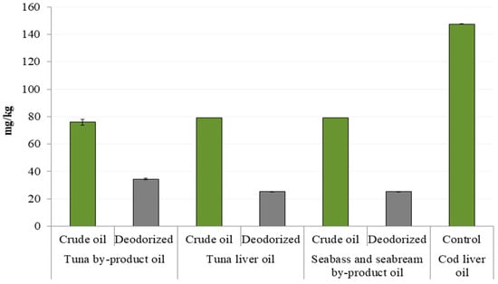 | Tuna liver oil | Crude oil | 3.13 ± 0.00 a | 2.68 ± 0.86 a | 20.9 ± 1.34 a | 26.0 ± 0.14 a | 2.88 ± 0.73 a |
