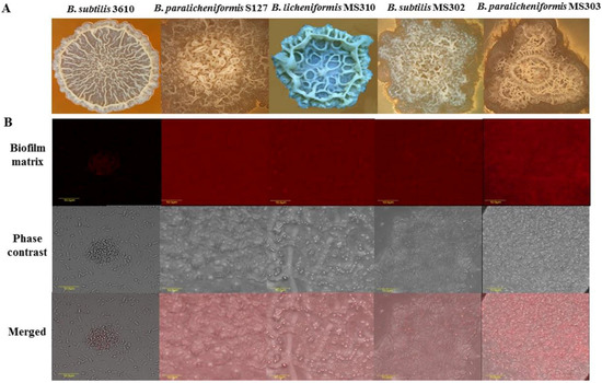 - Vlamakis, H.; Chai, Y.R.; Beauregard, P.; Losick, R.; Kolter, R. Sticking Together: Building a Biofilm the Bacillus subtilis Way. Nat. Rev. Microbiol. 2013, 11, 157–168. [Google Scholar] [CrossRef] [PubMed]