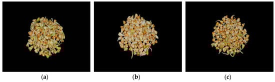 Buckwheat germinated for 72 h. (a) Control; (b) germinated buckwheat treated with 150 μM jasmonic acid; (c) germinated buckwheat treated with 0.1% chitosan.