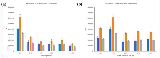 3.3. Effects of the Solid–Liquid Ratio and Water Content of NADESs on SHS Efficiency