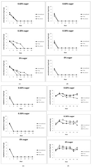 All experiments were carried out in triplicate (3 independent batches were prepared) and duplicate samples from each treatment were collected daily for the first 11 days and then weekly and subjected to chemical, microbiological, and strain-specific multiplex PCR.