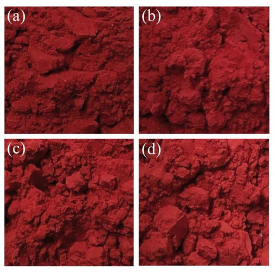 The color is an important characteristic during the encapsulation of pigments, since one of the functions of the encapsulated is to impart color or pigment food. Figure 1 shows the color obtained in the encapsulated powders with different concentrations of agave fructans. The color parameters of powders are shown in Table 3. The parameter L*, which represents lightness, was significantly affected (p < 0.05) by the percentage of fructan addition. Increases in the concentration of fructans resulted in higher L* values, which could be due to a whitening tendency from the agave fructans. This effect is observed in Figure 1, where a slight increase in luminosity is noticeable as the amount of agave fructans was increased. Similar results were reported by Kha et al. [29] for gac fruit juice powder and by Ruiz-Gutiérrez et al. [25] for red cactus pear powder, using maltodextrin and β-glucans as carrier agents, respectively.