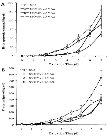 32. Mistry, B.S.; Min, D.B. Prooxidant effects of monoglycerides and diglycerides in soybean oil. J. Food Sci. 1988, 53, 1896–1897. [Google Scholar] [CrossRef]