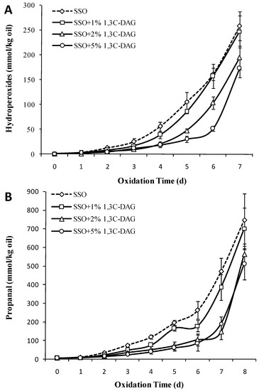 33. Qi, J.F.; Wang, X.Y.; Shin, J.A.; Lee, Y.H.; Jang, Y.S.; Lee, J.H. Relative oxidative stability of diacylglycerol and triacylglycerol oils. J. Food Sci. 2015, 80, C510–C514. [Google Scholar] [CrossRef] [PubMed]