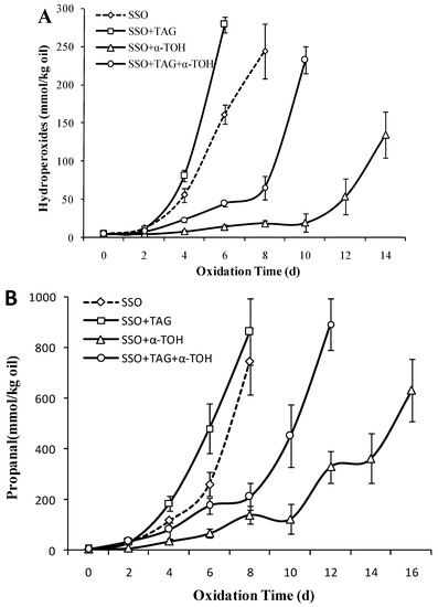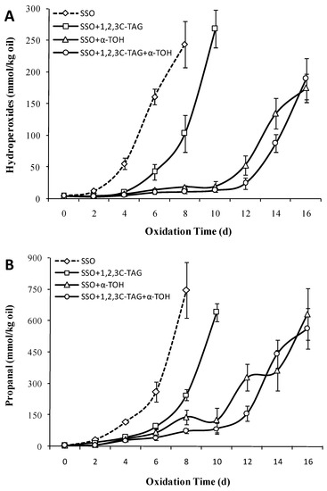 3.9. Effect of 1,2,3C-TAG on the Oxidation Stability of SSO with α-Tocopherol