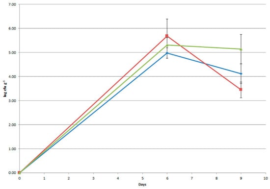 In fresh Giuncata, lactobacilli and lactococci loads were retrieved at approximately 103–104 CFU/g, reflecting the composition of the milk in the vat. This was expected, since coagulation, shaping, and packaging, lasting approximately 30–45 min, if carried out under hygienic conditions, does not promote the sprouting and growth of microorganisms. Giuncata Leccese is normally withdrawn from the market one week from the date of processing and packaging, with an expiry date of 10 days. Streptococcus parauberis was the dominant species found in Giuncata after 10 days of storage at 10 °C. It is a common agent of bovine mastitis that is frequently found in cheeses as part of the undesired background microflora [,].