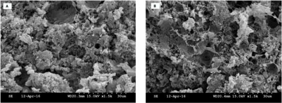 The structural conformations of sausage samples were analyzed to evaluate their structure, according to the protocol described by Hu et al. []. Cubic samples (3 × 3 × 3 mm3) cut from the internal part of the sausages were fixed with 3% of glutaraldehyde in 0.1 mol/L phosphate buffer (pH 7.3). The samples were post-fixed with osmium tetroxide (1%) prepared in 0.2 mol/L phosphate buffer (pH 7.3). Samples were washed and dehydrated in various concentrations of ethanol solutions. After that, the sample was dried, sputter-coated with gold/palladium (Denton 503 High-vacuum Evaporator, Moore Town, NJ, USA) and scanned using Hitachi S-3000 N microscopy (Hitachi High Technologies Corp., Tokyo, Japan) at 10 kV. Several micrographs were performed at 500× magnification to select the most representative ones.