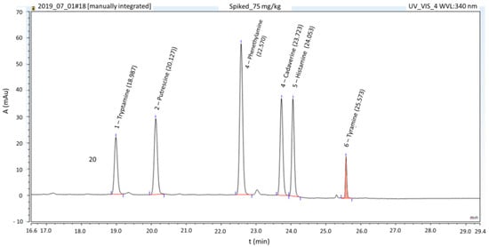 Figure S1 of the Supplementary Material S1). While the concentrations of Phe, Try, and Tyr showed slight decrease during the sequence and the concentrations of other BAs increased by a small amount, the fluctuations were only in the range of 0.2–2.6%, indicating that the analytes remained stable during the sequence, thus allowing their proper determination by the developed method. In addition, the content of BAs in some cases exceeded the maximal value (75 mg kg