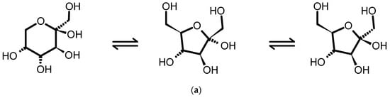 - Barclay, T.; Ginic-Markovic, M.; Johnston, M.R.; Cooper, P.; Petrovsky, N. Observation of the keto tautomer of d-fructose in D2O using 1H NMR spectroscopy. Carbohydr. Res. 2012, 347, 136–141. [Google Scholar] [CrossRef] [PubMed]