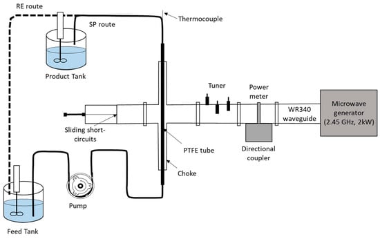 Schema of a continuous-flow MW processing system (adapted from Arrutia et al. 2020) [180].