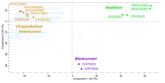 - Vagiri, M.; Ekholm, A.; Andersson, S.C.; Johansson, E.; Rumpunen, K. An optimized method for analysis of phenolic compounds in buds, leaves, and fruits of black currant (Ribes nigrum L.). J. Agric. Food Chem. 2012, 60, 10501–10510. [Google Scholar] [CrossRef]