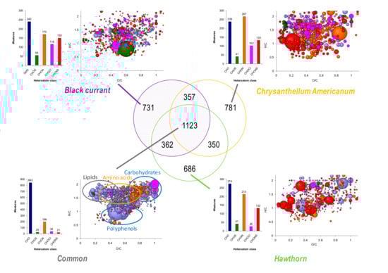 3.5. Global Composition and Differences in Chemical Composition between Plants Achieved by ESI FT-ICR-MS in Negative Mode