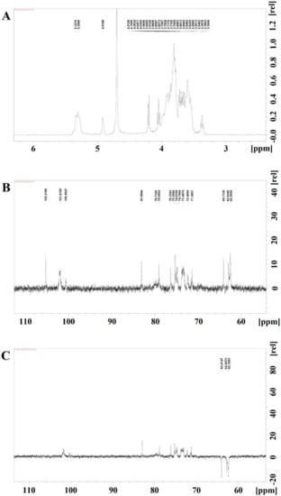 The nuclear magnetic resonance (NMR) spectra analysis of SQWP-2. (A) 1HNMR; (B) 13C NMR; (C) Dept135.