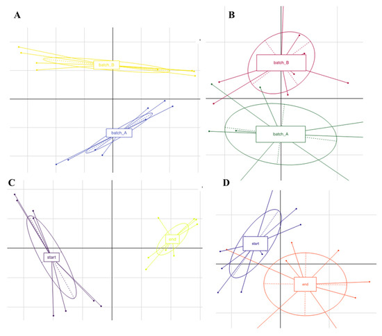 The alpha diversity index was calculated by the VEGAN package of R. Diversity index, and OTUs table were used in R to find statistically significant differences in the samples as a function of the fermentation time. Principal Component Analysis (PCA), aimed at exploring relationships between experimental variables and detecting possible sample clusters, and one-way ANOVA analysis, used to analyze the effect of ripening time on the dependent variables for each batch separately, were performed as described by Belleggia et al. [19]