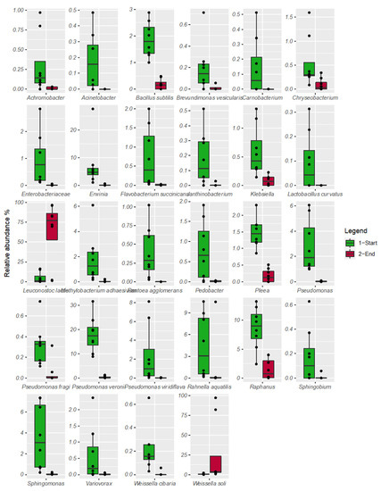 As for the presence of Sphingomonas spp., more than 100 species belonging to this bacterial genus have already been isolated from various environmental sources, including phyllosphere, rhizosphere, and plant roots [44]. Moreover, this genus was detected by Jung et al. [45] during the early stage of Korean kimchi fermentation [45].
