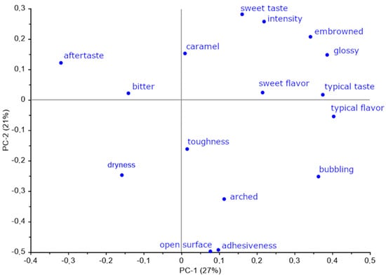 PCA loading plot of sensory attributes of muffin samples.