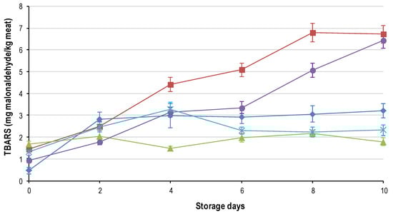 3.4. Lipid Oxidation (2-Thiobarbituric Acid (TBARS))