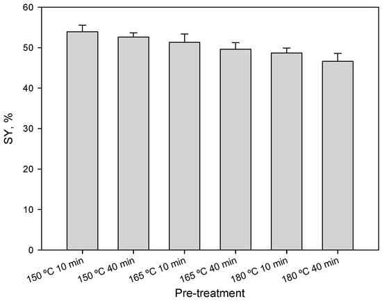 Solid yields (SY, %) for each operating conditions of liquid hot water pretreatment.