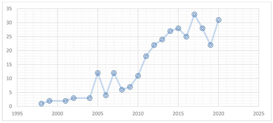 For decades, food security has been the main concern of a large number of studies. Different studies have been tackled various sides of issues that affect food security. Social capital is one factor that could affect an area’s food security level; thus, an essential number of papers have been issued exploring these relationships. Figure 2 points out the movement of the number of published papers between 1998 and 2020. It is highlighted that an increasing fluctuation shape was followed. A peak is registered in 2017, which explains the rise of the research interest in examining the link between social capital and food security.
