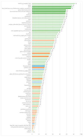 Plant-based ingredients were the most interesting according to consumers similarly to the type of suggestions. Only 24 of the 81 raw materials were of animal or insect origin and only the 24th of the raw materials in order of the most interesting ones was of animal origin.