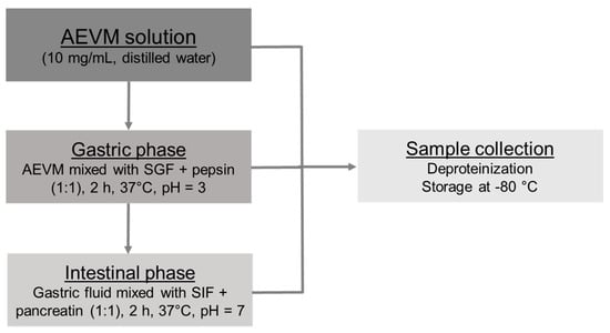 - Minekus, M.; Alminger, M.; Alvito, P.; Ballance, S.; Bohn, T.; Bourlieu, C.; Carrière, F.; Boutrou, R.; Corredig, M.; Dupont, D.; et al. A standardised staticin vitrodigestion method suitable for food—An international consensus. Food Funct. 2014, 5, 1113–1124. [Google Scholar] [CrossRef]