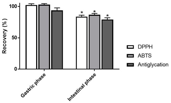 3.3. Impact of Simulated Digestion on Radical Scavenging and Antiglycation Activities of AEVM