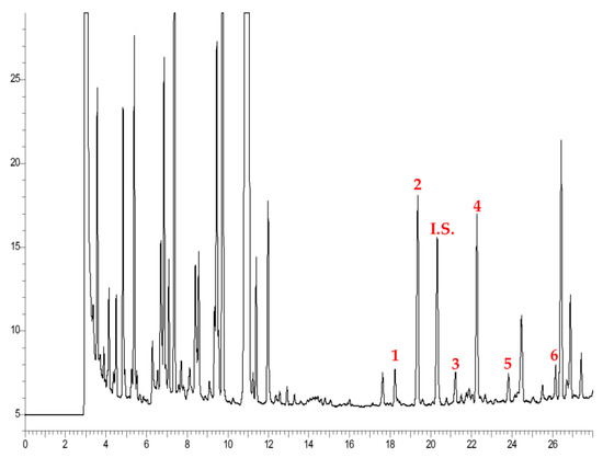 The COPs contained in the different egg products were determined by GC–FID (Figure 3), and their identification was confirmed by co-elution with commercial standards and by GC–MS.