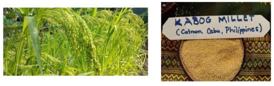 Cultivating ancient crops has huge benefits for our society. It improves food security by diversifying our staple foods, provides a greater range of options to address climate change, optimises land resources by cultivating soils unsuitable for the world’s major crops, promotes access to better nutrition for communities, especially in the developing regions of the world, and generates income opportunities for small- and medium-scale farmers []. The Philippines has a rich biodiversity and cultural heritage from its indigenous peoples. Many plant species used as staple foods, such as adlay (a type of grain), balayang (a wild banana), and landing (native tapioca) are native to the Philippines. Unfortunately, the knowledge about their uses and cultivation is slowly being forgotten with the demise of indigenous cultures. An example of ancient Philippine crops is the kabog millet.