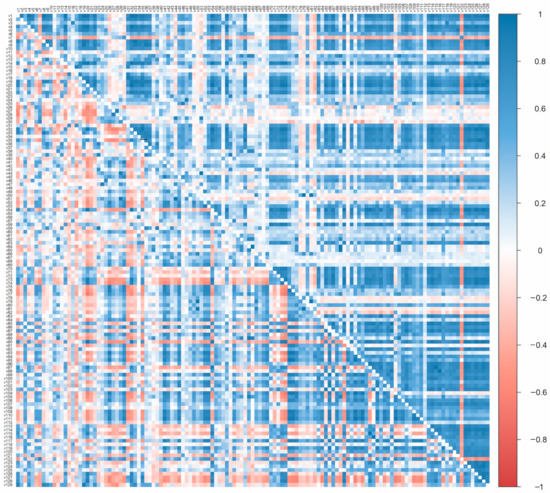There were many positive and negative correlations among the proportions of each VOC of their sum. As can be seen from the heat map (Figure 1), the correlations were mainly positive for the quantitative VOC data because for the majority of individual VOCs, the meat samples that released the greater sums of concentrations of all VOCs tended to outnumber those releasing the lower sums of concentrations. On the other hand, the qualitative data (proportions of each VOC of their sum) tended to exhibit smaller correlations that were more equally divided between positive and negative.