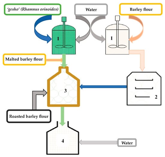 Abawari [] reported the raw materials and processing conditions of Keribo. According to the report, making Keribo begins by mixing roasted barley with hot water. Then, the mixture is boiled for about 20 min, after which the solid residue is removed by filtration. Subsequently, sugar and bakery yeast are added into the separated filtrate and left overnight to ferment. Finally, extra sugar is added to the mixture and the beverage is served to the consumer.