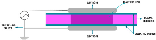 - Lee, E.S.; Cheigh, C.I.; Kang, J.H.; Lee, S.Y.; Min, S.C. Evaluation of In-Package Atmospheric Dielectric Barrier Discharge Cold Plasma Treatment as an Intervention Technology for Decontaminating Bulk Ready-To-Eat Chicken Breast Cubes in Plastic Containers. Appl. Sci. 2020, 10, 6301. [Google Scholar] [CrossRef]