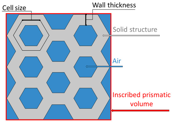 For these models, geometries with different cell sizes and wall thickness were considered, as reported in Table 3. The porosity of the honeycomb structures was computed as the air fraction of the total structure volume which was defined as the volume of the structure inscribed prism [8] (Figure 2).