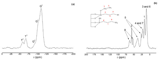 (a) 29Si PDA-MAS-NMR and (b) 13C CP-MAS-NMR spectra of H-SBA-15-SO3−.