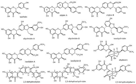 - Biedermann, D.; Vavříková, E.; Cvak, L.; Křen, V. Chemistry of silybin. Nat. Prod. Rep. 2014, 31, 1138–1157. [Google Scholar] [CrossRef]