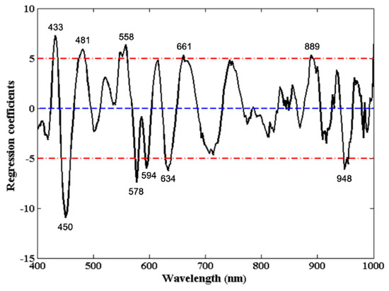 Regression coefficients of the optimal PLSR model based on full spectra.