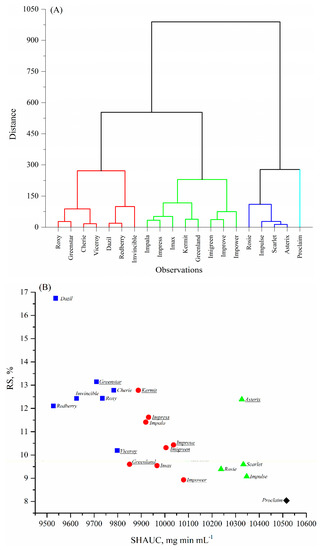 Group 4, the highest SHAUC (>10,400 mg min mL−1) and low RS (<9%); the variety is Proclaim.