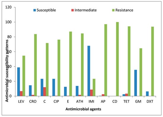 For the determination of the multiple antibiotic resistance (MAR) index, the formula MAR = x/y, stated by Krumperman [46], was adopted where x = is the number of antibiotics to which the test isolate showed resistance and y = is the total number of antibiotics to which the test isolate has been evaluated for susceptibility.