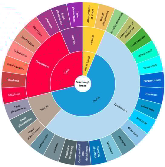 Starting from the lists of attributes previously developed by Heenan and coworkers [52] and Elia [51], a final set of 32 descriptive parameters for sourdough bread evaluation, including both quantitative and hedonic attributes, was individuated by agreement among panelists (Table 3).
