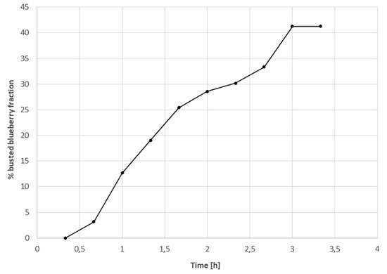 - (Blueberries were freeze-dried without any treatment, where the busting process was observed through photographic monitoring. The fraction of busted blueberries was computed throughout time.