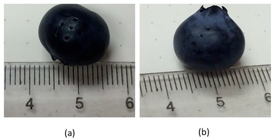 Appearance of blueberry fruit with nine (a) and three (b) CO2 laser microperforations.