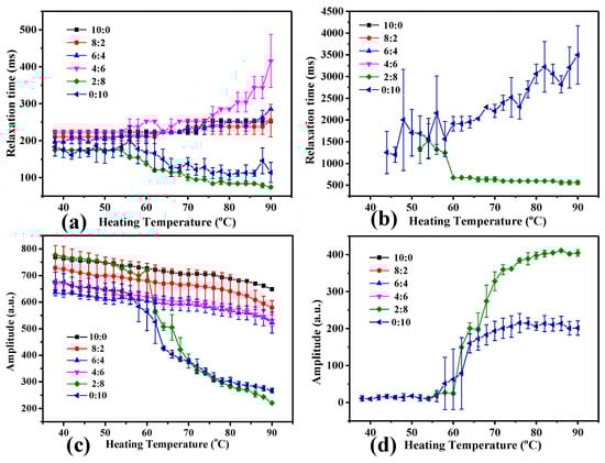 - Han, M.; Wang, P.; Xu, X.; Zhou, G. Low-field NMR study of heat-induced gelation of pork myofibrillar proteins and its relationship with microstructural characteristics. Food Res. Int. 2014, 62, 1175–1182. [Google Scholar] [CrossRef]