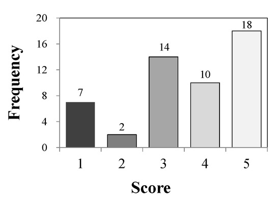 Frequency distribution of the number of the exhibits at each score in the airag contest.