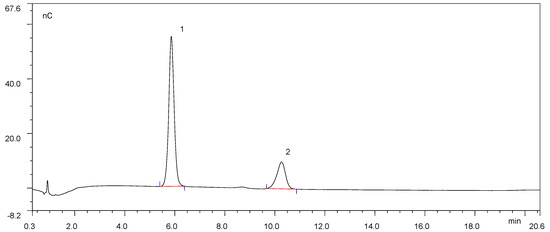 According to the chromatogram (Figure 4), TrAbf62A released both arabinose (retention time 5.9 min) and xylose (retention time 10.317 min) from insoluble wheat arabinoxylan, accounting for 77.6% and 22.4% of the total sugars, respectively. On the contrary, there are no obvious peaks in the chromatogram (Figure S1). The chromatogram indicated that the sugar concentration in the reaction mixture with insoluble wheat arabinoxylan was low. The low sugar concentration was most likely due to the low activity of TrAbf62A on insoluble wheat arabinoxylan, which was consistent with the results in Table 1.