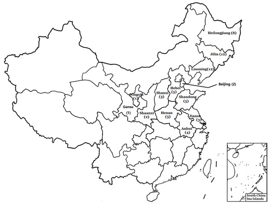 Distribution of sampling locations. The numbers in parentheses indicate the sample size of each province.