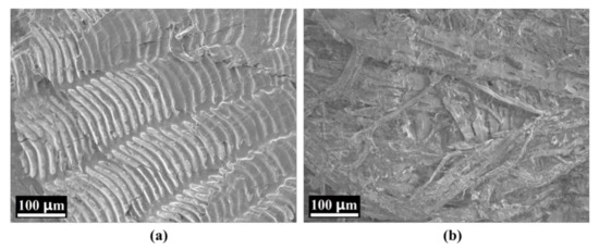 Scanning electron microscopy (SEM) images of (a) carp scale and (b) carp skin.