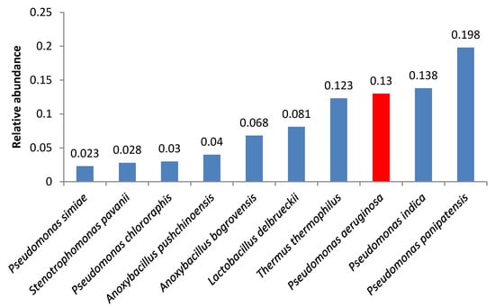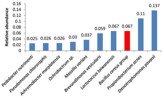 Two samples contained Pseudomonas aeruginosa; in one of them, this bacterium was the second most abundant microorganism. P. aeruginosa possesses an array of virulence factors counteracting host defenses and is one of the most common microbes causing respiratory infections in patients in hospitals []. Infections caused by P. aeruginosa are difficult to cure because of this microorganism’s ability to acquire resistance to antibiotics [].