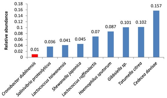 We also found other opportunistic pathogens. Samples 8 and 12 contained high quantities of bacteria from the Cronobacter genus (Figure 5, Figure 6); the same species were identified in smaller amounts in samples 7 and 9.