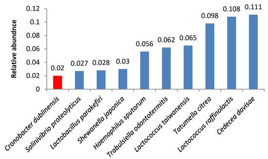 To our surprise, we identified bacteria of the Cronobacter genus in several butter samples by high-throughput sequencing. Sanger sequencing of bacterial colonies grown after plating of these samples on the universal nutritive medium identified them as Cronobacter sakazakii. C. sakazakii causes serious infections, such as necrotic enterocolitis, meningitis, and sepsis in formula-fed infants under 1 year of age []. Neonatal infections caused by C. sakazakii are often epidemiologically linked to the consumption of contaminated powdered infant formula []. It is known that C. sakazakii can live in low-moisture foods [] and has high tolerance to elevated temperatures [], which explains the presence of Cronobacter bacteria in dried food products. Cronobacter spp. have been found in powdered milk, spices, fresh vegetables, and pasta [,]. Here, we demonstrated for the first time, the presence of Cronobacter spp. in butter, which might be explained by the high tolerance of these microorganisms to media with low water content. Also, it may indicate that powdered milk could be used for the production of butter.