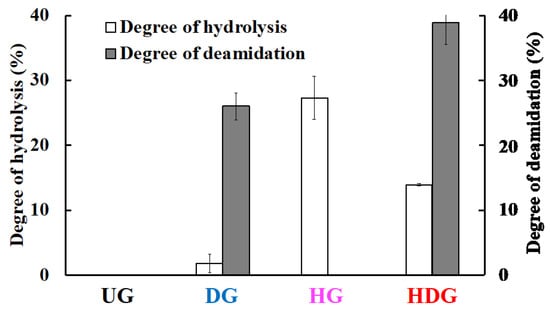- Kumagai, H.; Norimatsu, Y.; Hashizume, N.; Sakurai, H.; Kumagai, H. Deamidation of wheat-flour gluten with ion-exchange resin. Nippon Shokuhin Kagaku Kogaku Kaishi 2001, 48, 884–890. [Google Scholar] [CrossRef][Green Version]
