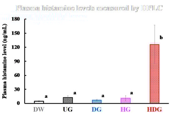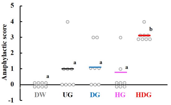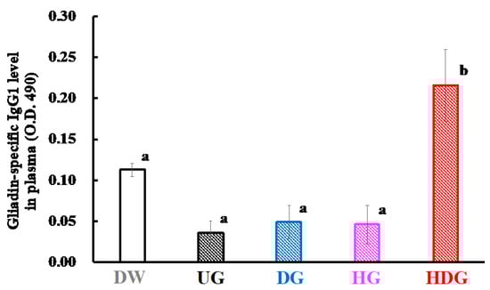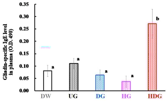2.7. Measurement of Serum Histamine and Gliadin Specific IgE and IgG1 Levels